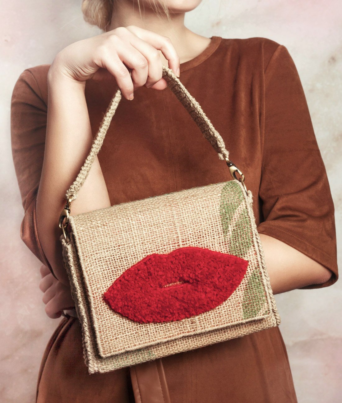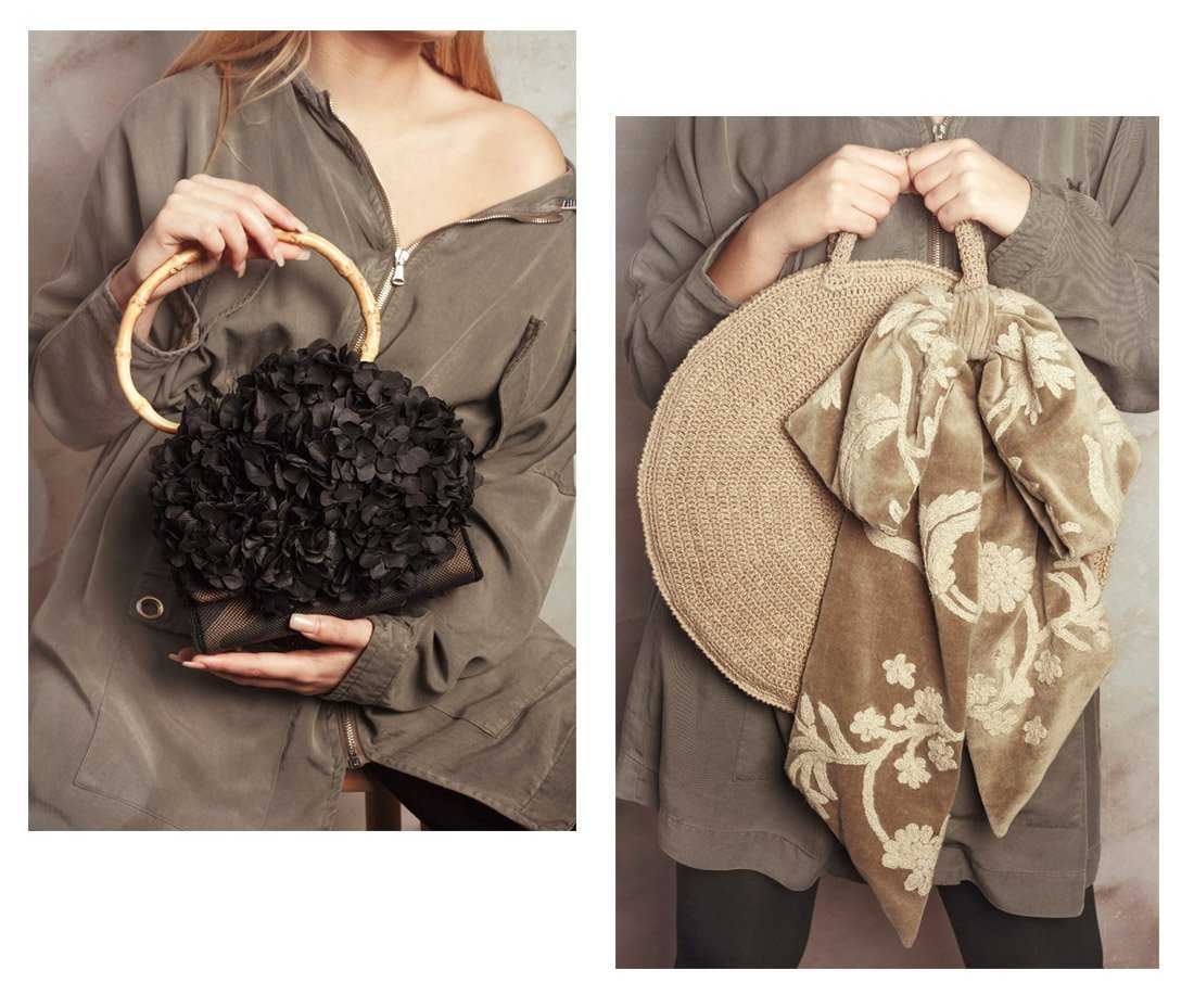 A: The materials I use as a base are coffee sacks and hemp thread. They are not the classic materials someone would work with. My idea is to always use recycled products and give them a new life. I use natural fabrics and I try to recover those dresses in disuse and turn them into flowers or decoration for my bags and purses. I also use the leather of jackets that are no longer used and that can be the perfect complement to create details for my designs. It is necessary to create awareness and I try to reflect it with my work.